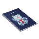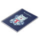 Cuaderno personalizado de gatito con una ilustración digital adorable que representa a un gato azul feliz enamorado. El pequeño felino sonríe y sostiene un gran corazón rojo.