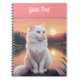 Hermoso gato blanco de pelo largo sentado junto a un lago al atardecer. Agrega esta imagen a otros productos. Agrega tu propio texto también. Cambia el color de fondo. Muchos animales en mi tienda.