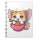 Un lindo gato de hadas comiendo fideos de ramen de un bol.