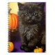 Cuaderno con un gatito de Halloween vintage! Un gatito negro esponjoso posa junto a las calabazas contra un fondo púrpura. ¡Un regalo divertido para fiestas de Halloween y amantes de los gatos!