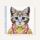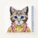 Este diseño presenta un retrato de gato con una camisa de verano y lei hawaiana.