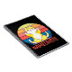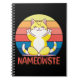 Ilustracion colorido con el diseño de texto "Nameowste" y el lindo gato Kawaii está haciendo yoga con fondo retro a rayas de colores