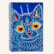 Bloc de notas con la pintura animal de Louis Wain Un gato en estilo gótico (1860-1939). Un gato azul psicodélico mira amistosamente con ojos amarillos al espectador. Un regalo maravilloso para los amantes de los gatos y el arte inglés.