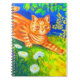 Bloc de notas con la pintura animal de Louis Wain Cat Stalking (1860-1939). Un gato a rayas naranja camina por un campo verde por la noche. Flores blancas, violetas y rojas están en primer plano. Un regalo maravilloso para los amantes de los gatos y el arte inglés.