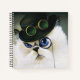Retrato de gato siamés de pelo largo con un gorra de vapor con gafas y un monóculo de vidrio.