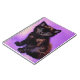 Un portátil con un gato de estilo Van Gogh de fondo morado. ¡Este gatito negro mira al espectador adorablemente! ¡Un gran regalo para los amantes del gato y para los coleccionistas holandeses de arte!