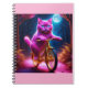 Cuaderno Gato Rosado Montando En Bicicleta Dorada