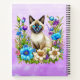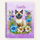 Cuaderno Gato siamés color agua ai en flores personalizado