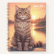 Hermoso gato atigrado gris sentado junto a un lago al atardecer. Rompecabezas, planificadores, cuadernos, adornos, baldosas, fundas para teléfonos más con este diseño en mis tiendas. Agrega esta imagen a otros productos. Agrega tu propio texto también. Cambia el color de fondo. Muchos animales en mi tienda.
