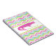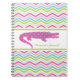 ¡Es fácil personalizar este colorido cuaderno de gaviotas de chevron y polka rosada con un nombre antes de pedir! Las rayas de chevron rosas, verdes, azul acuático, grises y blancas con un caimán salpicado de polka rosa y azul y un rincón fácilmente personalizar con un nombre.