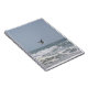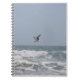 un cuaderno con una foto de una gaviota capturando un pez fuera del océano Atlántico.