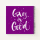 Esta obra de arte incluye texto de guión con la frase "Gay is Good".