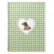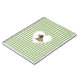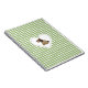 Un bonito estilo campestre con la imagen de un perro gingham marrón acolchado en medio de un corazón blanco cosido sobre un fondo de gingham verde sabio.
