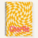 Portátil con un patrón de tablero de ajedrez amarillo y retorcido y tu nombre personalizado en rosa caliente frambuesa.