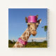 Para divertirse un poco, aquí hay una jirafa en un gorra rosa brillante y un collares de estrangulador. Hay un pequeño espacio para que añadas tu propio texto personalizado si lo deseas. Sigue adelante y diviértete un poco. Esta imagen fue creada a mano y no se genera IA.