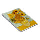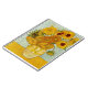 El jarrón de Vincent Van Gogh con 12 girasoles es amarillo sobre un fondo de azul claro. Los girasoles muestran fuertes pinceladas características del gran artista impresionista.