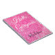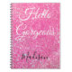 Un purpurina rosado brillante y personalizado brillan Hola magnífico cuaderno con una elegante escritura blanca.
