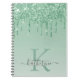 Cuaderno Girly Mint Green Purpurina Drips Monogramado
