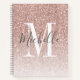 Cuaderno Girly Rose Gold Blush Pink Glitter Monogram Name
