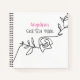 Moderna, moda, sencilla flor rosa de dibujo, cuaderno de bocetos de color blanco y negro con nombre.