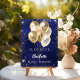 Un fondo azul marino, de colores desiguales, decorado con falsos purpurinas plateados y globos dorados. Personaliza y tu, nombre, edad y fecha.