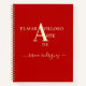 Un elegante y moderno cuaderno de bocetos con fondo rojo y letras doradas. Personalízalo agregando tu nombre o simplemente edítalo desde el Editor de Zazzle. Añade tu nombre completo, monograma o el texto que desees.