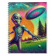 Disco de arte alienígena de golf alienígena. Colorido gris extraterrestre lanzando un disco en el planeta tierra.