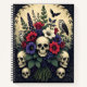 Human skulls, colorful flowers, owls, and a crow combine to make a wonderful, Gothic notebook.