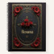 An old, gold Gothic frame decorated with red flowers, on a dark background, makes a beautiful spiral notebook. Darkly romantic, perfect for those who love Victorian Gothic.