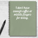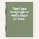 El portátil perfecto para uno de esos días...o semanas. Con un fondo verde sabio, la moderna tipografía blanca y audaz dice "no tengo suficientes dedos medio ni café para hoy".