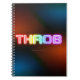 SlipperyJoe's throb rainbow gradiente gruesas letras capitalizadas de textura punteada llenando tonos rojos naranja azul borrosa giros torbellinos intensificando el impacto visual neón paisaje ambiente iluminación psicodélica neón señalización arte orgullo gay regalos de gentileza marca LGBTQIA diseño hipnótico selección de palabras cargadas artísticas