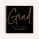Graduación de nombre de graduado de texto dorado Libro de invitado negro. ¡Muéstrate en tu fiesta de graduación para que los invitados dejen sus deseos para el graduado! Grad está en un guión moderno y el resto del texto que se puede personalizar fácilmente. Haga clic en la opción Editar más adelante si desea cambiar el texto y los colores de fondo.