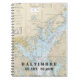 Diario sobre sus aventuras en barco en este personalizable Baltimore, condado de Baltimore, cuaderno de Maryland con un auténtico gráfico de navegación (número 12273 que muestra la bahía de Chesapeake) en coordenadas tradicionales azules, tostadas, blancas y de latitud y longitud que apuntan al famoso acuario del puerto interior.