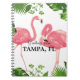 Greetings from Tampa, FL with pink flamingos and tropical palm trees design.