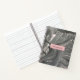 Blanco, gris, negro y un toque de cuaderno abstracto original rosado se diseña con un vertido de pintura acrílica y se titula "3 D". Este diseño agrega una adición audaz y única a cualquier área de escritura. Elija el diseño de papel interior y el color del enlace de espiral. Personalice el nombre de este bloc de notas. El texto gris de una caja rosa se puede personalizar fácilmente en este bloc de notas en negrita. Consideremos esto también como un gran regalo. ¡Disfrútenlo! Ice Song Original Artz de © Patricia Fogelsonger
