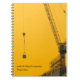 Una libreta temática de construcción minimalista que presenta un diseño monocromo simple en negro y amarillo. Cuenta con una grúa de construcción silueteada hacia el primer plano con una firma simple de la empresa hacia la esquina inferior.