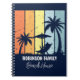 Portátil tropical azul marino personalizado para su casa de playa familiar en Hawaii, Florida u otros destinos de la isla. Las palmeras de Guay se oponen a los colores retro de naranja y amarillo por encima de tu nombre de vacaciones personalizado en escritura blanca. Los regalos que se emparejan son geniales para un grupo que va en un crucero o escapada costera.