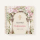 Commemorate this special milestone in faith with elegance and grace. This Confirmation guest book features a stunning design with a classic marble garden arch adorned with soft pink watercolor flowers and lush greenery, symbolizing purity and spiritual growth. A delicate gold cross adds a meaningful sacred touch.