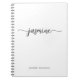 Cuaderno personalizado con monograma de nombre con letra script minimalista femenino simple y limpio. Este diseño presenta su primer nombre en una bonita tipografía con estilo de letra a mano con florituras, con una plantilla de nombre completo sobre fondo blanco. Estos son fáciles de personalizar y se pueden utilizar como libro de cocina, diario, planificador, cuaderno de dibujo, diario y más. También es un regalo femenino elegante para cumpleaños, día de la madre, despedida de soltera, boda, fiesta de cumpleaños de 16 años y baby shower, negocios, graduación, regreso a la escuela, trabajo profesional y para cualquiera que le gusten las cosas simples y limpias.