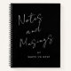 Modern Minimal Black And White bloc de notas, con la tipografía moderna de escritura "Notes and Musings" para inspirar sus ideas y pensamientos creativos, personalizados con su nombre en la parte delantera y su monograma con el nombre en la parte posterior. Perfecto para el viaje o la planificación. Agregue su propia información siguiendo el vínculo "Personalizar esta plantilla".