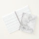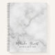 Cuaderno moderno profesional con nombre en estilo de letra script moderna gris con texto personalizado en estilo de letra sans serif moderna gris sobre fondo de mármol blanco.