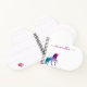 Un unicornio fantástico de color turquesa, morado y un poco rosado para un chica adolescente. Fondo blanco. Personalice y agregue su nombre al frente. El nombre está escrito con un gran guión moderno de estilo con letras a mano. Letras de color púrpura. Para que los cambios sólo eliminen el nombre del ejemplo, deje los espacios o la emoji delante y después del nombre. Fondo blanco y unicornio.
