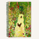 Bloc de notas con el jardín de pintura al óleo de Gustav Klimt con gallos (1917). Dos gallinas marrones se encuentran en un camino al jardín. Hermosas flores rosas, rojas y blancas florecen a lo largo del camino. Un gran regalo para los amantes del arte Art Nouveau y austriaco.