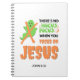 Cuaderno de Halloween cristiano personalizado. El texto dice NO HOCUS POCUS CUANDO SE CENTRA EN JESÚS, en una tipografía blanca, verde y naranja brillante. El diseño presenta un ghoul con una gran X en él, y debajo hay un PERSONALIZABLE TEXT, que se puede personalizar con tu nombre u otro texto. La referencia de la Biblia es Juan 8:32 - SI EL HIJO TE LIBRE, ERES LIBRE DE HECHO. Este cuaderno cristiano de Halloween sería un gran regalo durante la temporada de Halloween. Elija entre una amplia selección de diseños cristianos de Halloween de los diseños bereanos, especialmente creados para gente de fe que quiere celebrar una alternativa a Halloween. Hay regalos coincidentes disponibles.