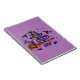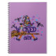 Halloween malvado pero adorable gorra bruja, escoba, calabaza, murciélagos y estrellas de color naranja acuático, morado y azul.