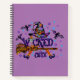 Halloween malvado pero adorable gorra bruja, escoba, calabaza, murciélagos y estrellas de color naranja acuático, morado y azul.