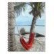 Fotografía de una hamaca colgada entre dos palmeras en una playa caribeña.