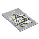 Echa un vistazo a este símbolo de las Reliquias de la Muerte de estilo geométrico, rodeado de triángulos grises, amarillos y azules.