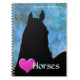 A blue/green background design with the black silhouette of a horse and a pink heart and the word Horses. A great notebook for your horse lover! Personalize with your name. Designed by Robin D. Cox.