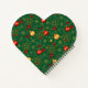 Unique Heart-Shaped Notebook! Features rich emerald green with shimmering gold accents and classic red ornaments. Perfect seasonal stationery and a joyful Christmas gift